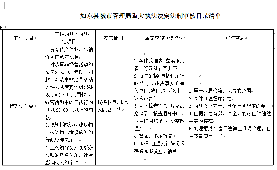 名稱: 如東縣城市管理局重大執法決定法制審核目錄清單